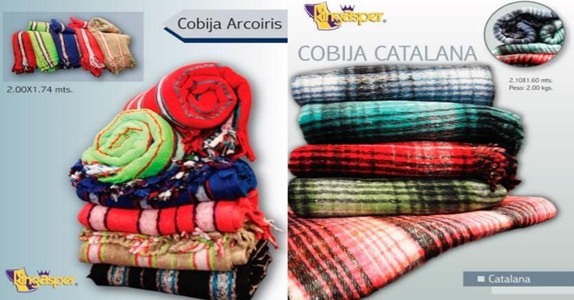 - Cobija Catalana con medida de 2.10 x 1.60 cm, Peso: 2.00 Kgs, en varios modelos y colores