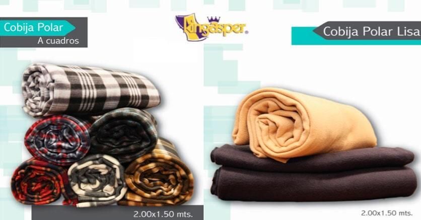- Cobija polar lisa, Medida 2.00 x 1.50 cm, Peso: 900 grs, varios colores